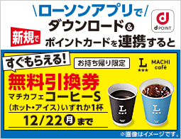 ローソンアプリで新規でポイントカードを連携すると、無料引換券がもらえる!
