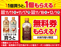対象のソフトドリンクと揚げ物を同時購入で100円引