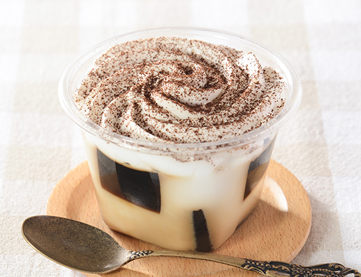 ぷるんとした食感としっかりと苦味が楽しめる珈琲ゼリーにたっぷりのホイップクリームを絞った、満足感のある珈琲ゼリーです。