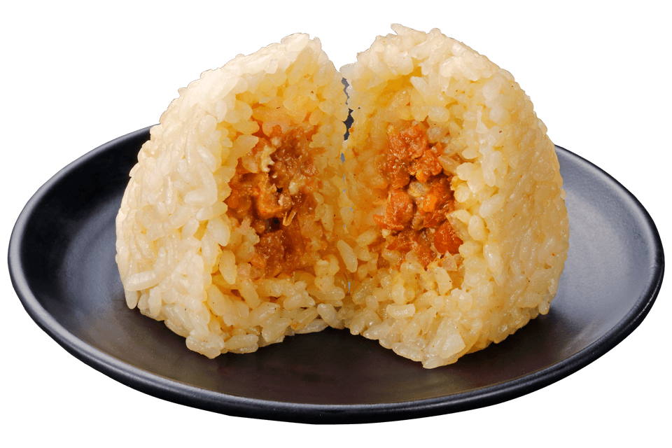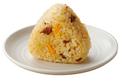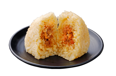 醤油と鶏がらスープで炊き上げたごはんに、背脂を絡めたチャーシューを包みました。魁力屋の看板メニュー「京都背脂醤油ラーメン」をイメージしたおにぎりです。