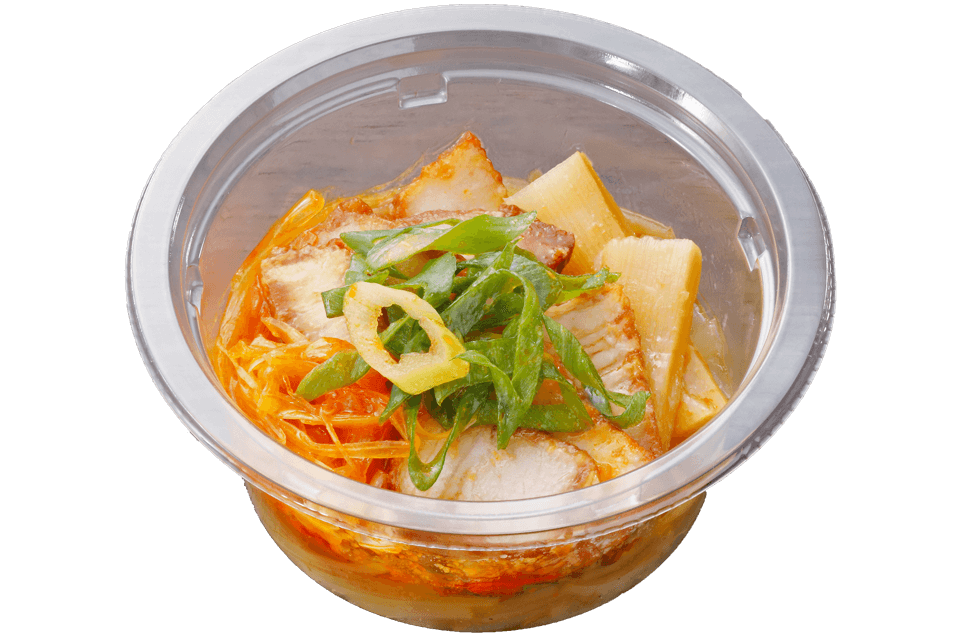 魁力屋の看板メニュー「京都背脂醤油ラーメン」をイメージしました。背脂を使用しコク深い味わいの醤油スープが食感と喉越しにこだわった中細麺によく合います。