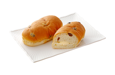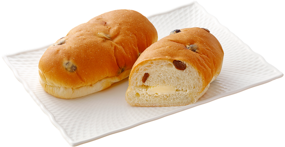ふんわりと焼き上げたソフトなぶどうぱんに、淡路島の藻塩入りマーガリンをサンドしました。甘酸っぱいレーズンと、ほんのり塩味のマーガリンが合わさり、飽きのこないおいしさに仕上げています。