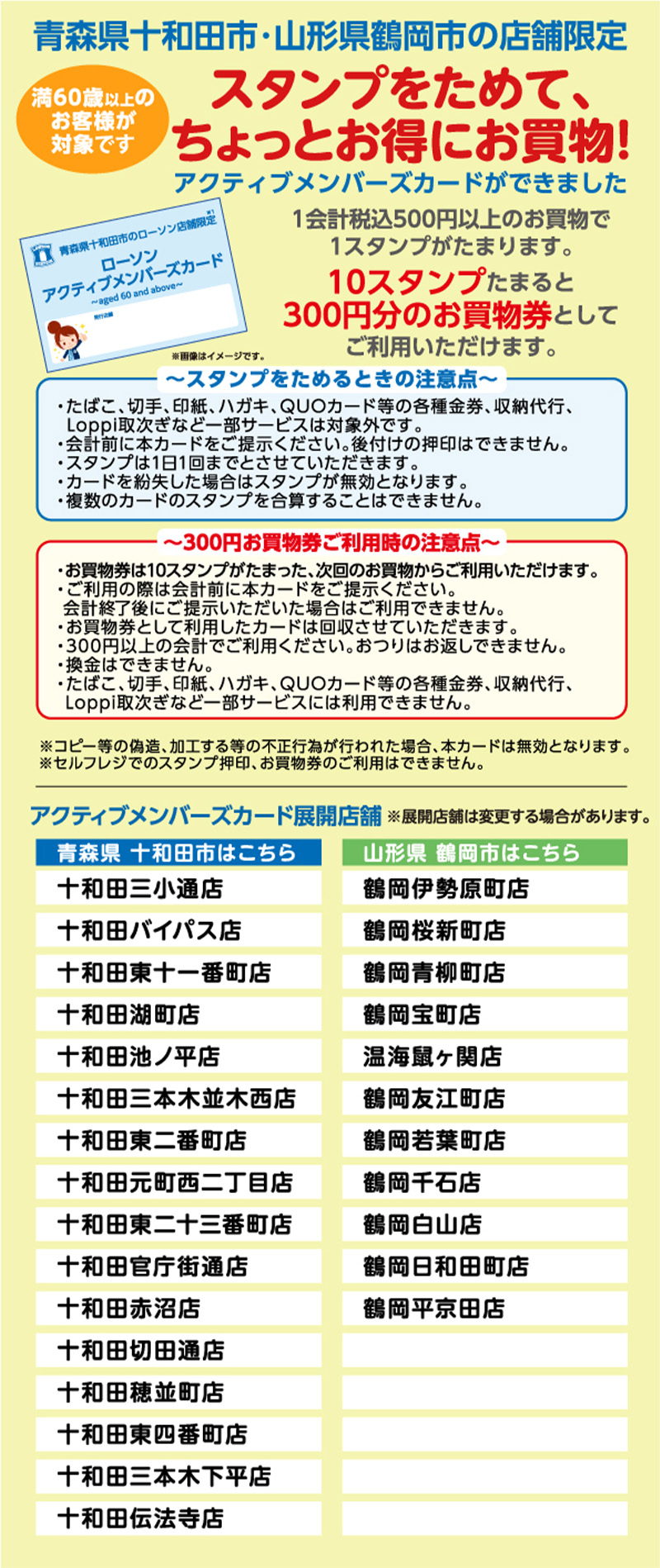 十和田市・鶴岡市限定「アクティブメンバーズカード」