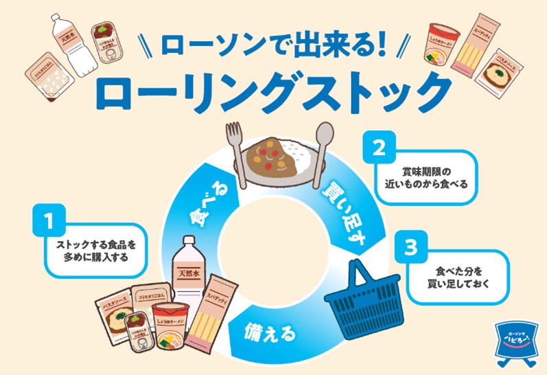 また、身近なコンビニでも始められる1人分の“ローリングストック”として、ローソン店舗で手軽にご購入いただける、災害時に役立つ商品を選定しました。