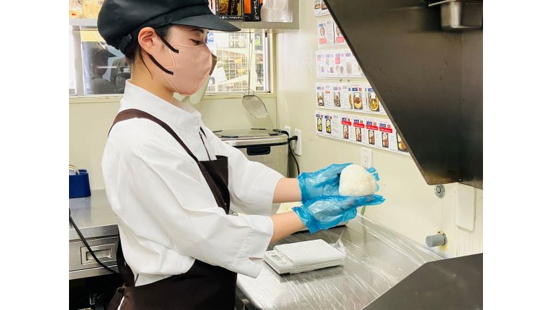今回の訓練で作成したおにぎりは通常の店内調理“まちかど厨房”と異なり、海苔や具材は使用せず、塩などの味付けもしない、お米だけのシンプルなおにぎりで、まちかど厨房導入店全店で作成できる仕様です。