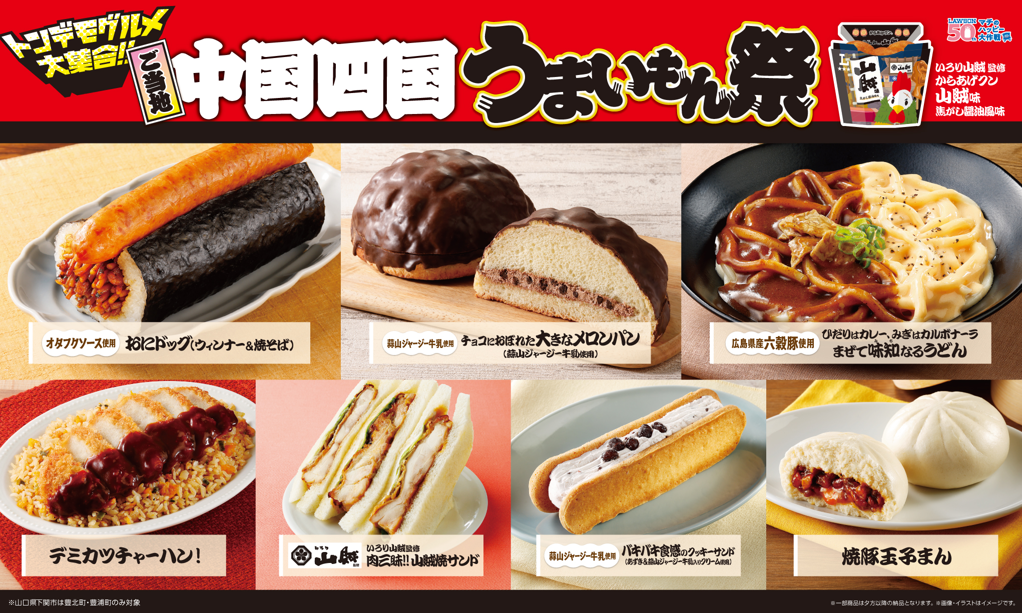 中国・四国地区では、『からあげクン いろり山賊監修 山賊味』のほか、デミカツチャーハンや山賊焼サンド、地元食材を使用したベーカリーなど計8品を発売いたします。
