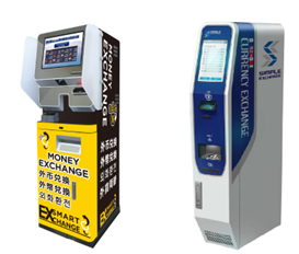 写真左から、SMART EXCHANGE社、エクステック社の外貨両替機 |