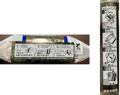 おにぎり(下部)と手巻寿司(側面)に表記している開封の方法 |