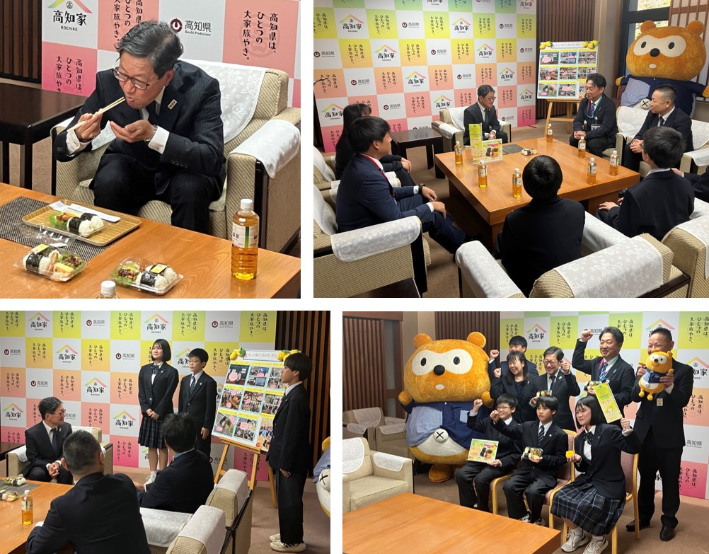 高知市立義務教育学校土佐山学舎と共同開発した商品の発売報告で県知事訪問