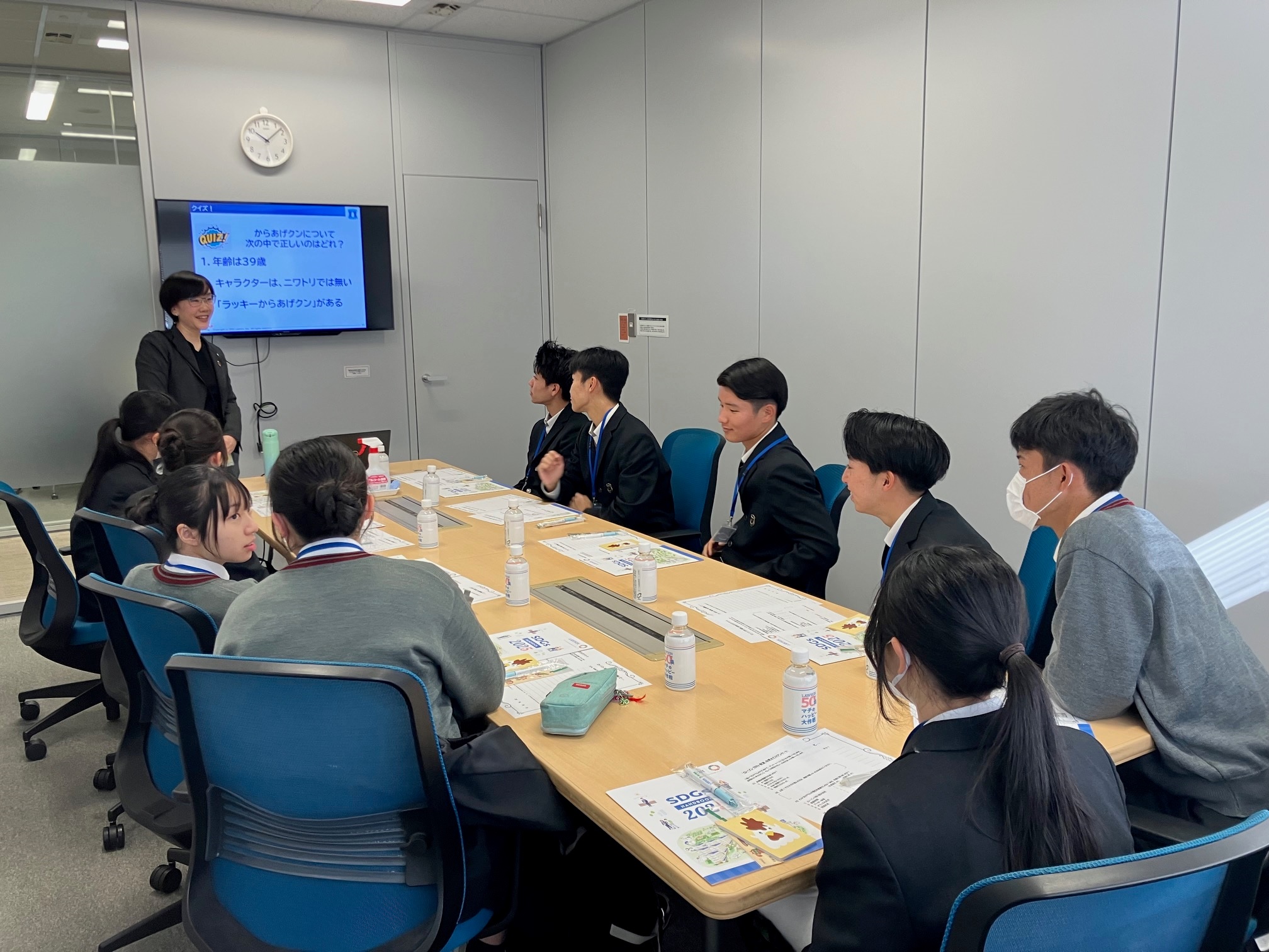 「ローソンSDGs教室」は、中高生の皆さんに、ローソンのSDGsに関する取り組みを楽しく学んでいただくことを目的に実施しているプログラムです。22回目となる今回は、長崎県立佐世保西高等学校の生徒さん10名がお越しくださいました。
