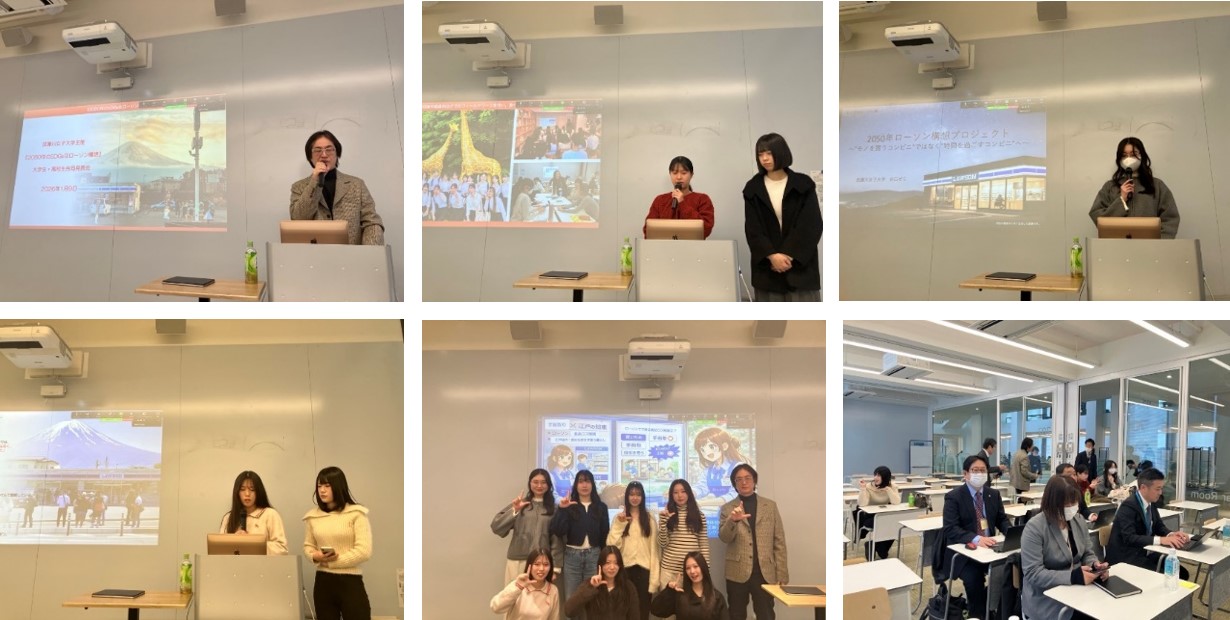 株式会社ローソンは、次世代リーダーの育成及びキャリア教育支援の一環として、2026年1月9日(金)に武庫川女子大学経営学部経営学科(谷口ゼミ)主催による、2050年のサステナブルなローソン構想を主題とする大学生(高校生)合同発表会に参加しました。