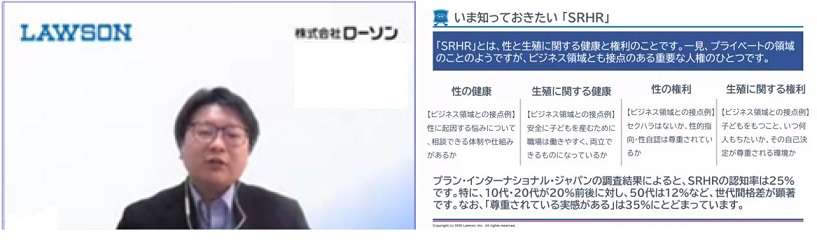 ローソングループ健康推進室による説明の様子/集合写真(一部メンバー) |