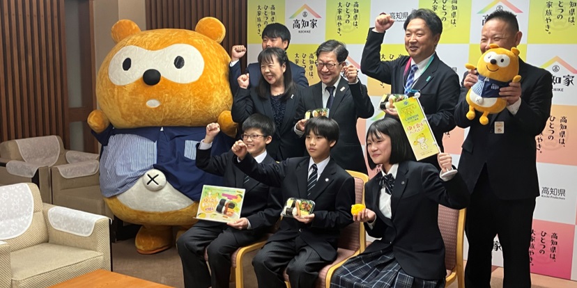 高知市立義務教育学校土佐山学舎と共同開発した商品の発売報告で県知事訪問