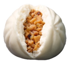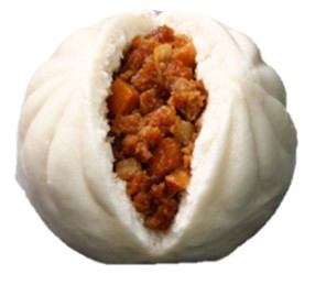 ごろっとした豚肉と食感をしっかり楽しめる大きさにカットした玉ねぎ、タケノコ、椎茸をふんわりとした生地で包んだジューシーな肉まんです。具材や生地の量を増やし、昨年対比で総重量をアップしました。