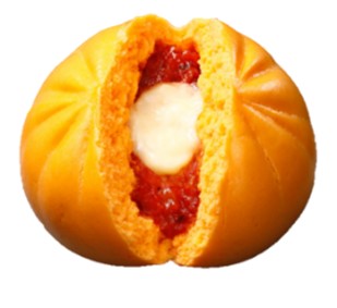 ピザまん(税込180円) 4種のチーズを使用したとろりとのびるチーズに、ポルトガルとイタリア産の酸味と甘味のバランスの取れたトマトソースを合わせ、ふっくらとしたくちどけの良い生地で包みました。 |