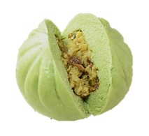 森半監修 抹茶ショコラまん(税込195円) 京都の老舗茶屋「森半」監修のもと、旨味とコクのある宇治抹茶の一番茶を使用した中華まんです。ほろ苦い抹茶チョコともっちりとした生地とのバランスの良さが特長です。 |