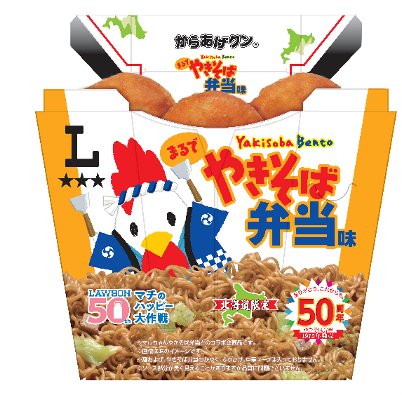株式会社ローソン(本社:東京都品川区、代表取締役 社長:竹増 貞信、以下「ローソン」)は、創業50周年を記念して、同じく今年で発売50周年を迎えたマルちゃんの人気カップ焼そばシリーズ「やきそば弁当」(※1)とコラボした「からあげクン まるでやきそば弁当味」(税込298円)を、10月14日(火)から北海道のローソン店舗(728店:2025年8月末時点)で発売いたします。