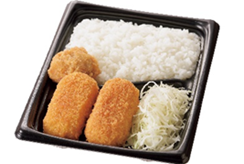 「丹那牛乳のかにクリームコロッケ&から揚げ弁当」 税込646円 ※中部地区のまちかど厨房導入店(約1,290店)で発売 静岡県産「丹那牛乳」を使用した、サクサクとした食感と滑らかな優しい味わいのクリームが特長の“かにクリームコロッケ”と、鶏のから揚げを一緒に楽しめる店内調理のお弁当です。 店内の厨房スペースで、クリームコロッケと鶏のから揚げを揚げ、ごはんを炊いています。 |