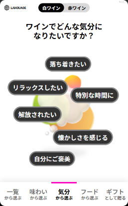 今回導入するセントマティックのソムリエAIは、ワイン選びで迷ってしまうお客様に向けて、自分に合ったワインの銘柄を手軽に選べるサポートをすることができます。お客様がワイン売場に設置してある専用タブレット上で「なりたい気分」や「好みの味わい」に近い選択肢を選択するだけで、「人の風味の感じ方」を学習したAIがナチュラルローソンで販売しているワインの中でお客様と相性の良いワインの銘柄を提案します。提案されたワインの銘柄の風味や印象がタブレット上でわかりやすい言葉で表現されるため、実際に飲まなくても味の特徴をつかむことができます。また、ナチュラルローソンで販売しているおつまみに合うワインの銘柄や、ワインをギフトとして購入する際に贈りたい相手のイメージに合わせたワインの銘柄を提案する機能も備えています。さらに、英語や中国語などの多言語表記の対応も可能です。
