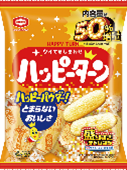 「ハッピーターン 50%増量 119g」(税込204円) 従来品の「ハッピーターン 79g」と比較して、内容量を約50%増やしました。 あまじょっぱいパウダーがクセになるおいしさです。 ※約17万食(供給可能数量) |