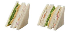 「盛りすぎ!ポテトたまごサンド」(税込297円) 従来品の「ポテトたまごサンド」と比較して、ポテトサラダを約50%増やして、3層のサンドイッチにしました。 にんじん、玉ねぎ、ハムなどを使用したポテトサラダと、たまごサラダにレタスを組み合わせたサンドイッチです。 ※1月13日発売の商品と比較 ※約117万食(供給可能数量) |