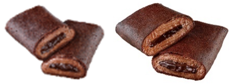 「盛りすぎ!くちどけショコラクレープ」(税込265円) 従来品の「くちどけショコラクレープ」と比較して、チョコホイップとチョコソースの量を約50%増やしました。 北海道産生クリームとチョコを合わせたチョコホイップと、カカオ分約72%のチョコレートを使用したチョコソースを包んだクレープです。 ※沖縄での販売はありません。 ※約166万食(供給可能数量) |