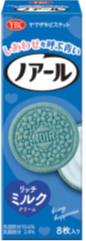 「ヤマザキビスケット しあわせを呼ぶ青いノアール リッチミルククリーム 8枚」(税込194円) 見た目は鮮やかな青色ながら、濃厚なミルクの味わいが広がるクリームサンドビスケットです。 |