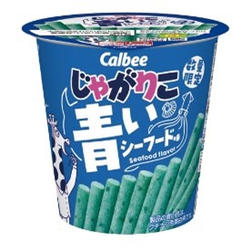 「カルビー 青いじゃがりこ シーフード味52g」(税込210円) 2025 年2 月の発売時にご好評いただいた、魚介の旨みをお楽しみいただける、青い色合いが特長のシーフード味のじゃがりこを再発売いたします。 |