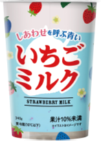 「しあわせを呼ぶ青いいちごミルク 340g」(税込258円) 見た目は青色をしたインパクトのあるいちごミルクです。 青色でも味は通常のいちごミルクと同様の味で、果肉の食感とミルクの甘みが特長です。 |