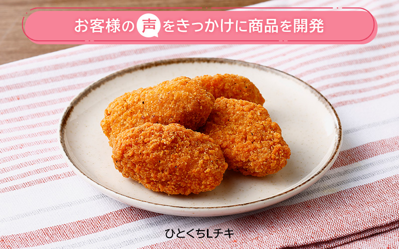 お客様のニーズに応えるため、一口サイズで食べやすい「ひとくちLチキ」を開発しました。