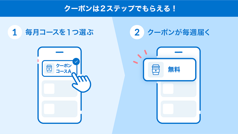 ローソンアプリでもクーポンのコースが毎月選べる!選んだコースに合わせて、クーポンが毎週ローソンアプリに届きます。よく買う商品がもっとおトクに楽しめます。