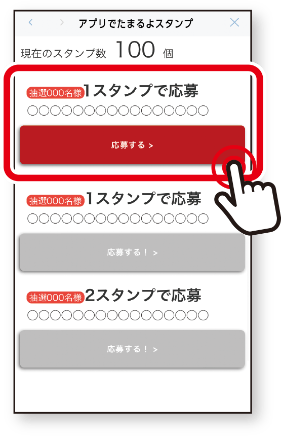 キャンペーン期間中に、ポイントカードを提示して、対象商品を100円(税込)購入ごとに1スタンプたまり、スタンプ数に応じて応募すると、抽選で景品が当たります。