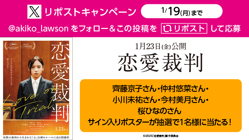 映画『恋愛裁判』公開記念 フォロー&リポストキャンペーン!
