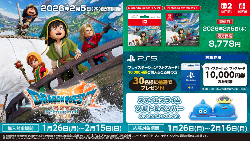 1月26日(月)より、「プレイステーション®ストアカード」を対象とした『ドラゴンクエストVII Reimagined』発売記念キャンペーンを開催!