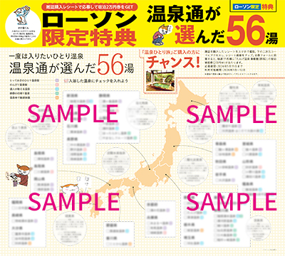 ローソン限定特典「温泉通が選んだ56湯MAP」が付いてくる!