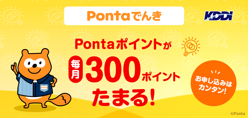 適用条件:①受付期間内に本サイトのお申込みボタンからPontaでんきを新規でお申込みいただくこと