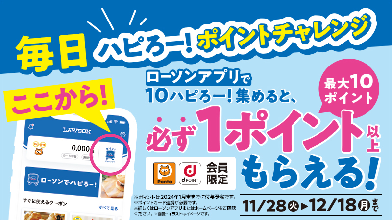 ローソンアプリで「毎日ハピろー!ポイントチャレンジ」!