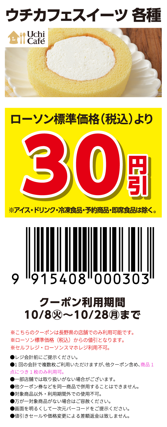 【長野県限定】ウチカフェスイーツ 各種 30円引クーポン