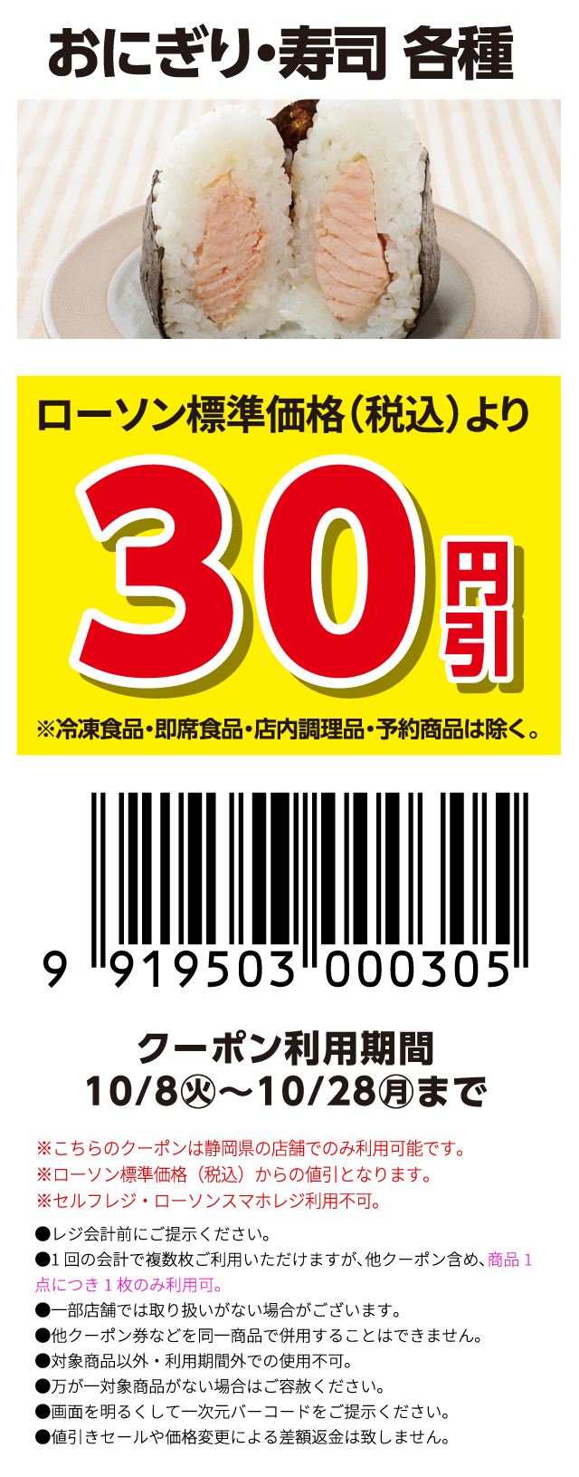 【静岡県限定】おにぎり・寿司 各種 30円引クーポン