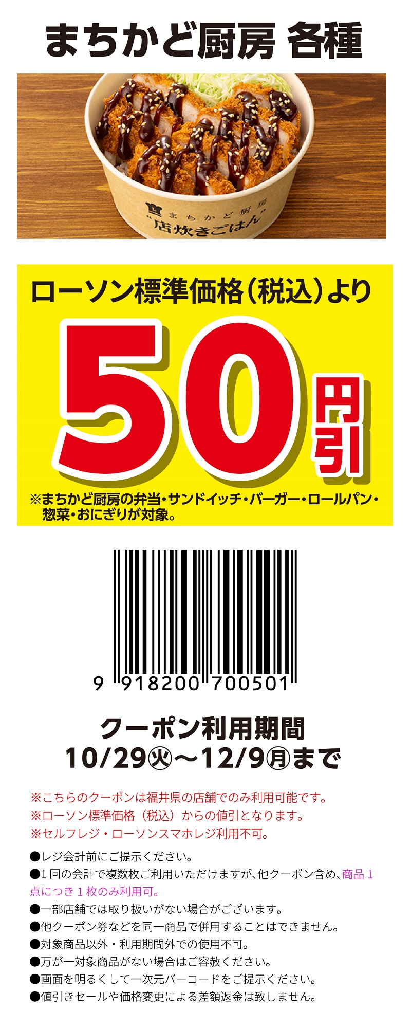 【福井県限定】まちかど厨房 各種 50円引クーポン