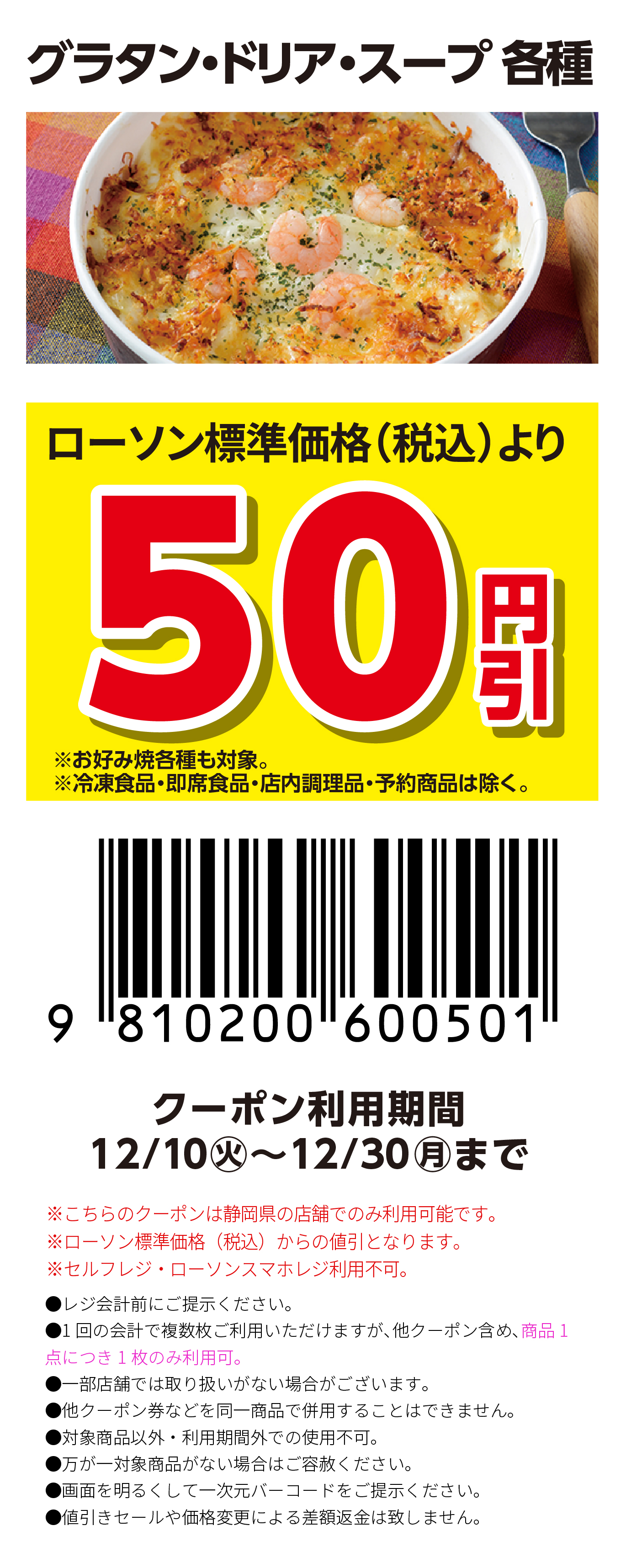 【静岡県限定】グラタン・ドリア・スープ 各種 50円引クーポン