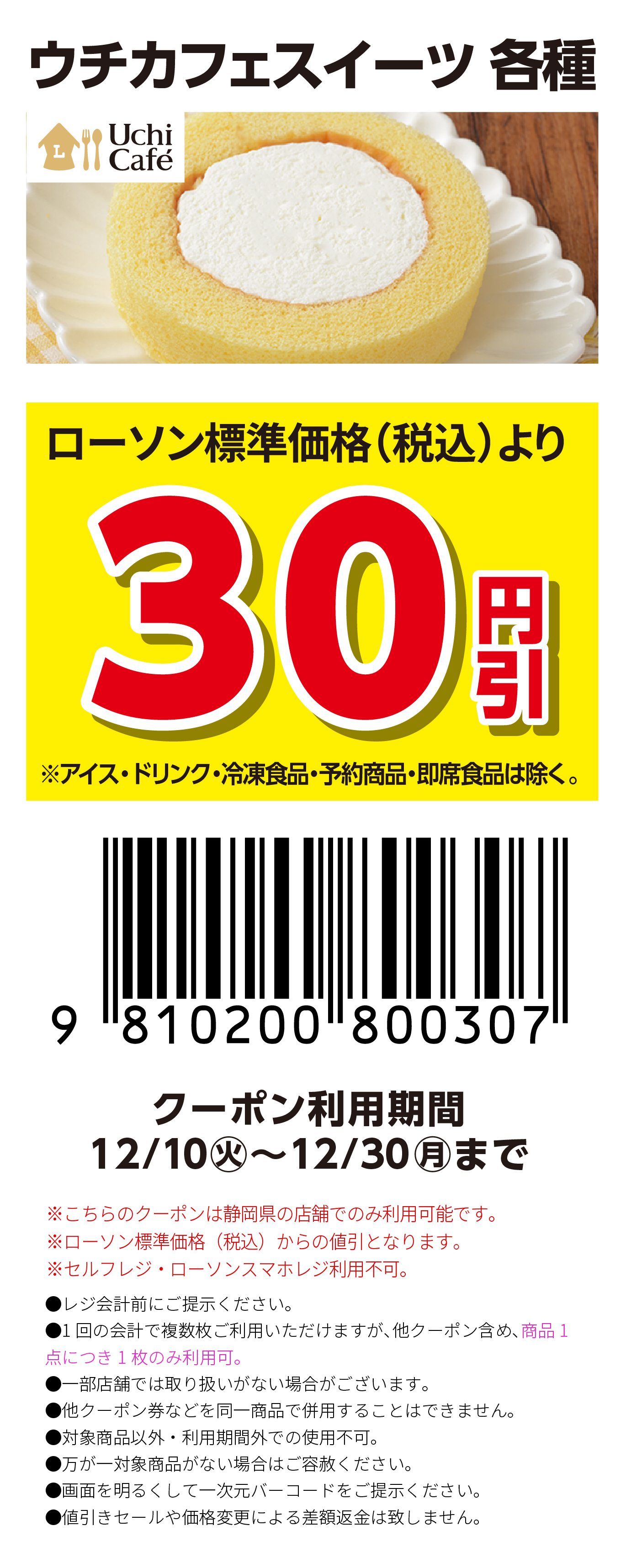 【静岡県限定】ウチカフェスイーツ 各種 30円引クーポン