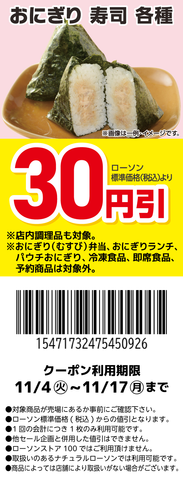 おにぎり・寿司 各種 30円引クーポン