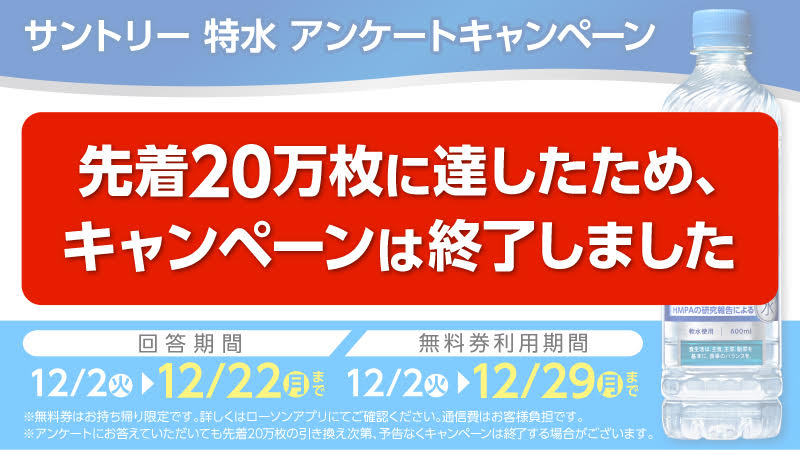※アンケートにお答えいただいても、先着20万枚の引き換え次第、予告なくキャンペーンは終了いたします。