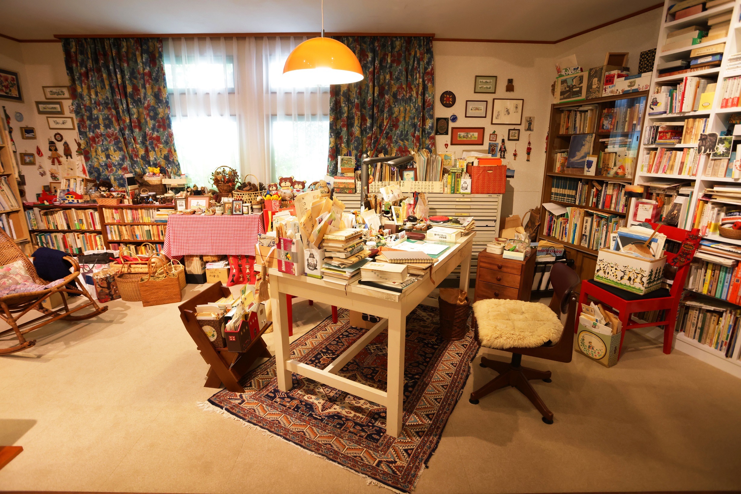 「『山脇百合子の仕事部屋』展~ごちゃごちゃから見えるもの~」が開催中。第1室では、絵本や、挿絵画家としてスタジオジブリとも関わりが深い山脇百合子さんの“仕事部屋”が再現されている。