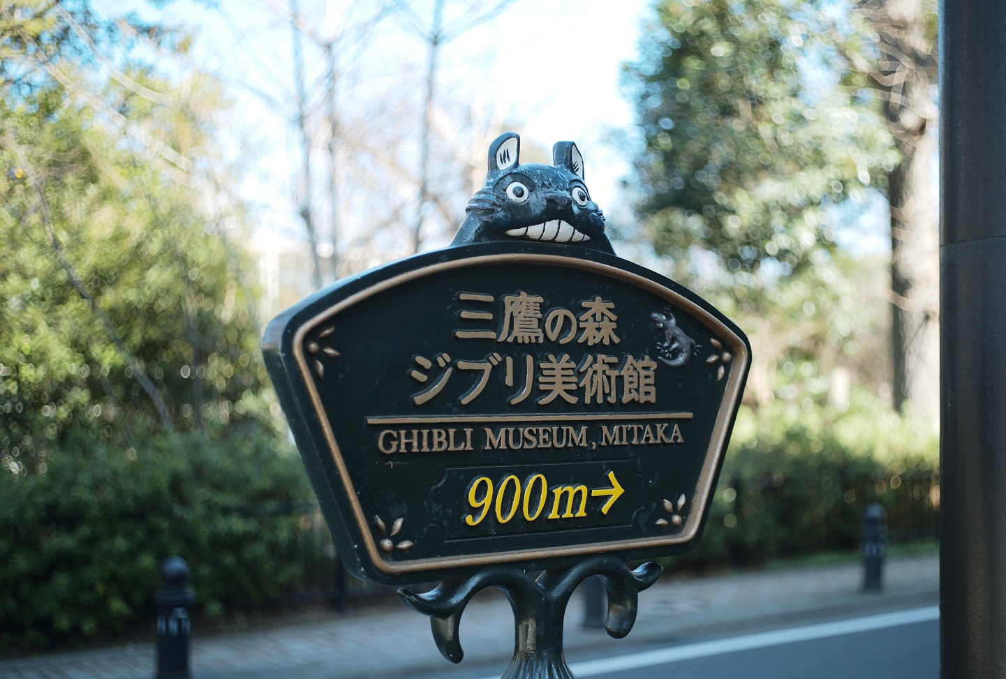 看板で美術館への道を案内しているのは“山猫”。道中の“足跡”や、美術館誕生を記念して宮﨑駿監督が描いた三鷹市のキャラクター「Poki(ポキ)」があしらわれたエンブレムなど、どこにあるのか探してみてほしい。
