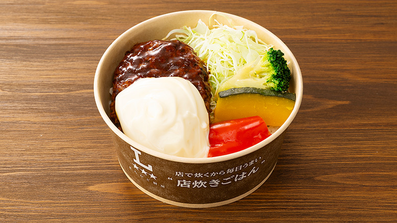 温めてより美味しい!とろ~りチーズソースとコク深いデミソースのハンバーグ丼です。