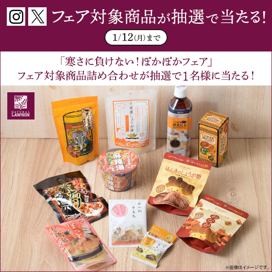 ナチュラルローソンでは、1月6日(火)~1月26日(月)まで、「寒さに負けない!ぽかぽかフェア」を開催中です。