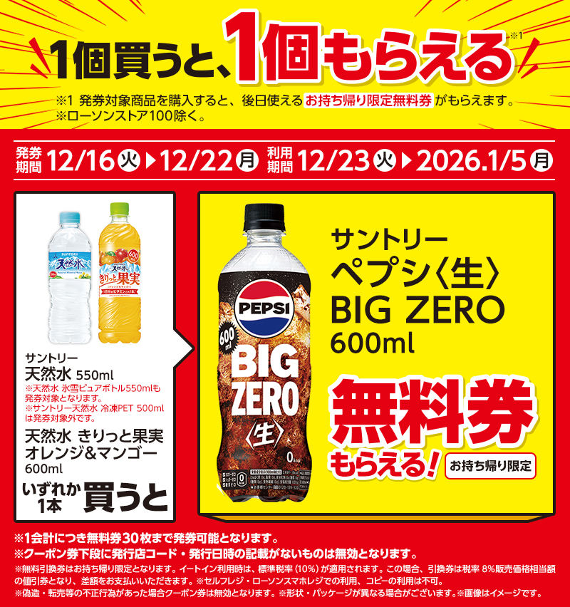 レシート無料券 引換期間 12/23(火)~2026.1/5(月)