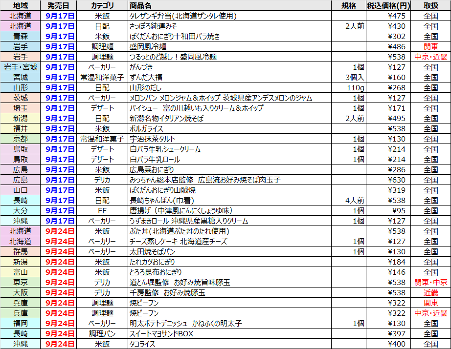 「日本列島グルメ祭」の商品は、9月17日(水)、9月24日(水)と2週に渡って発売します。